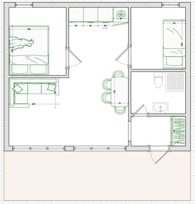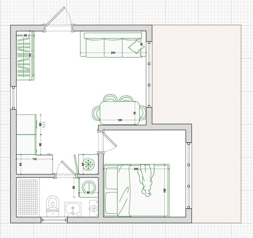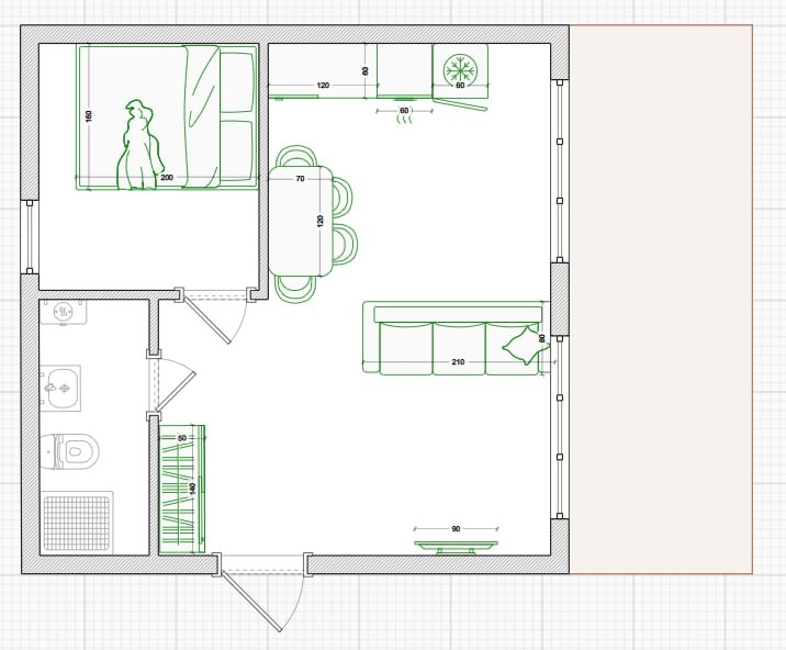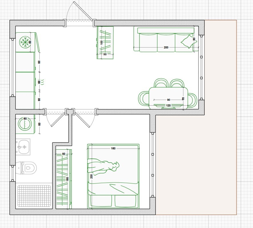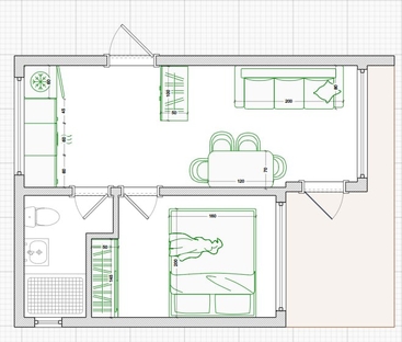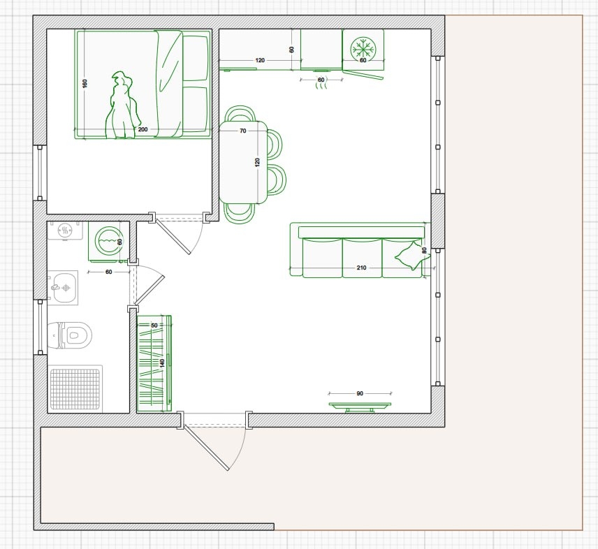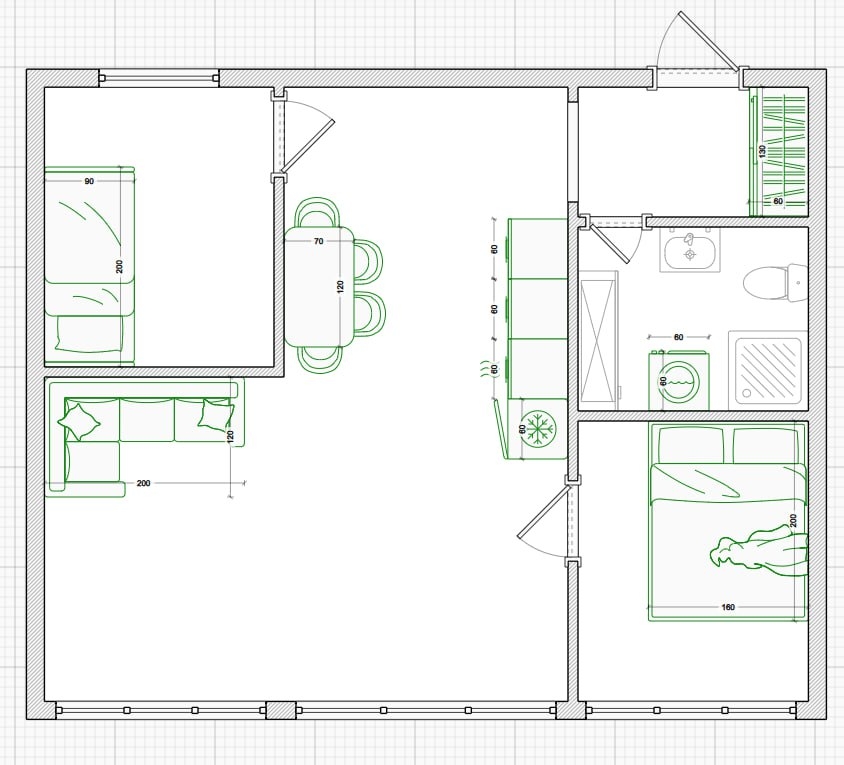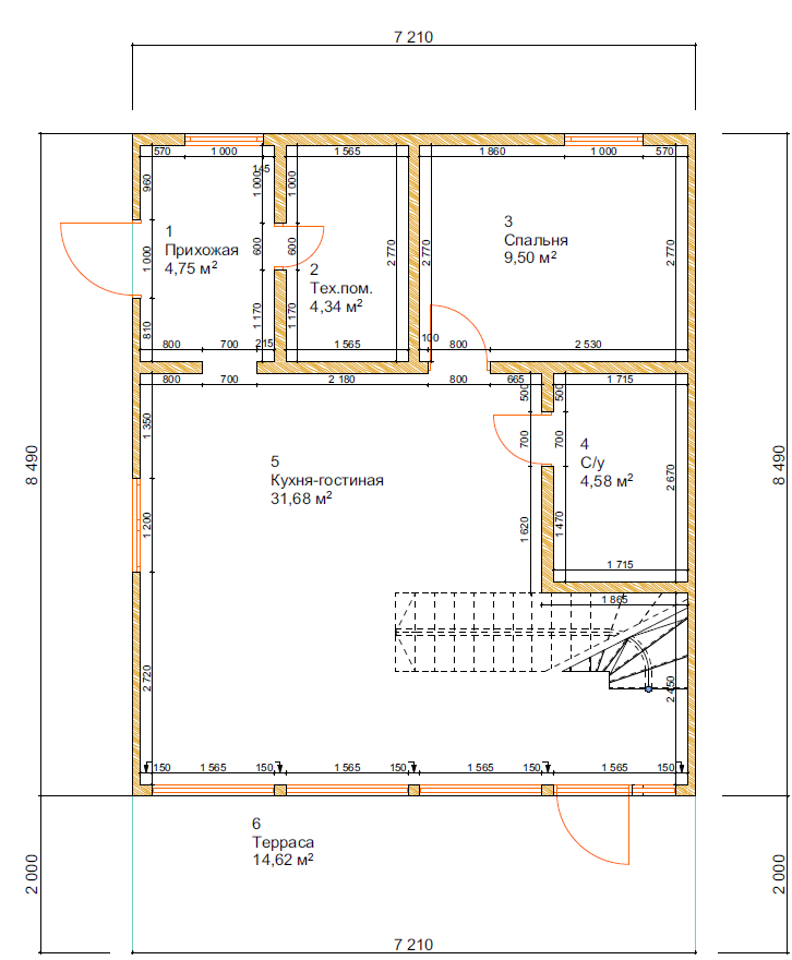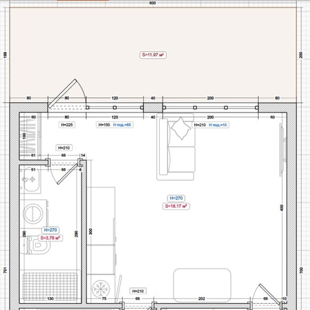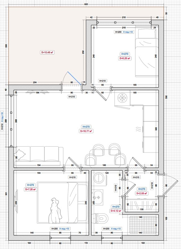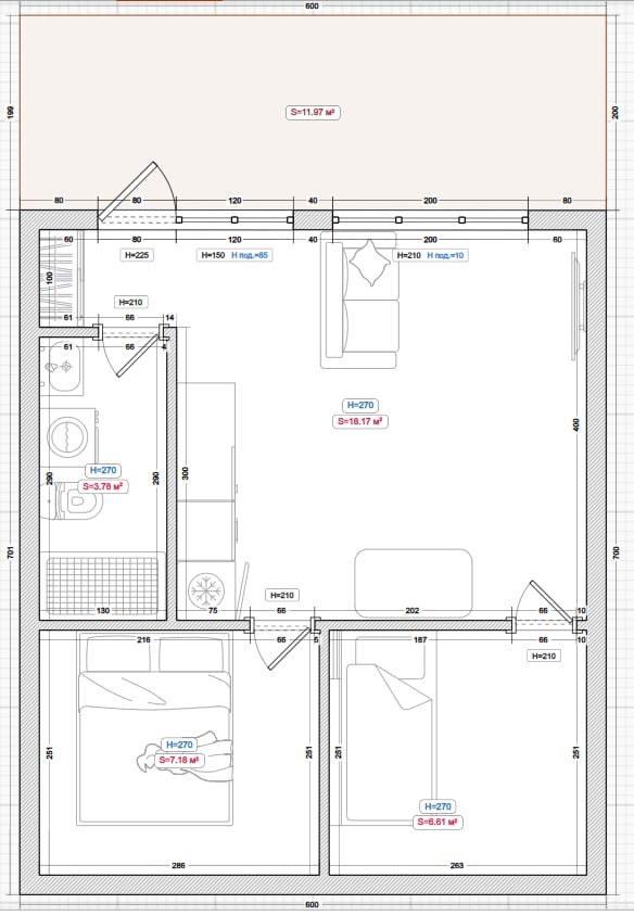 вместо 2,5м, поэтому стены не давят, планировка более удобная и все помещается, как надо